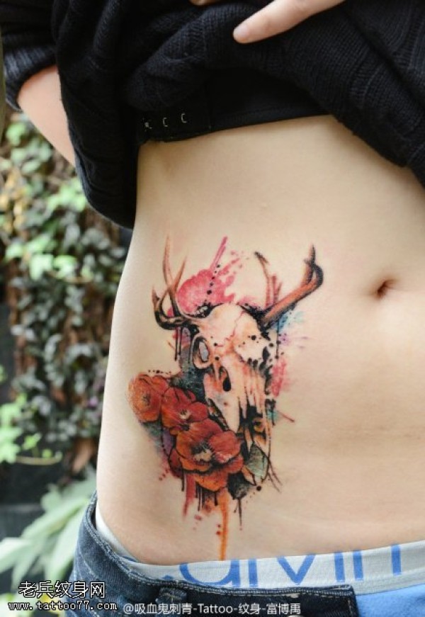 女性腰部莲花花纹刺青_腰部纹身图案大全_纹身图吧