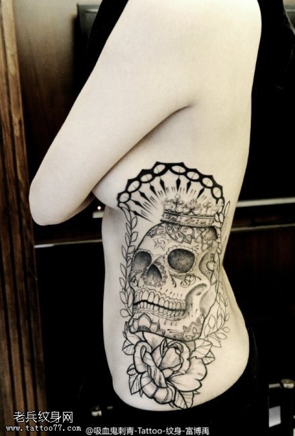 侧腰女骷髅刺青图案图片_骷髅纹身图案大全_纹身图吧