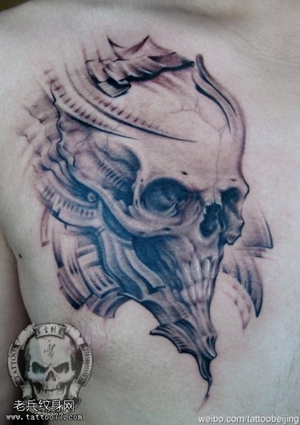 恐怖吓人骷髅头纹身图案