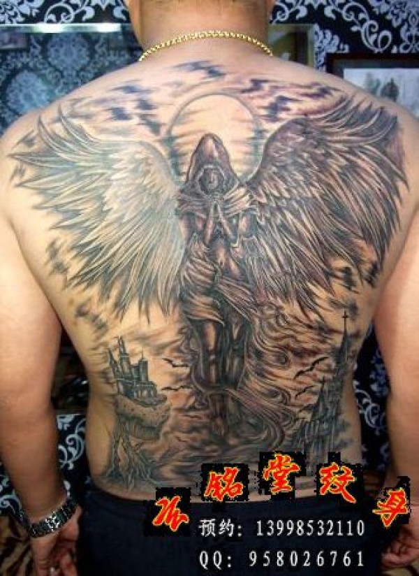 大连纹身后背守护天使纹身