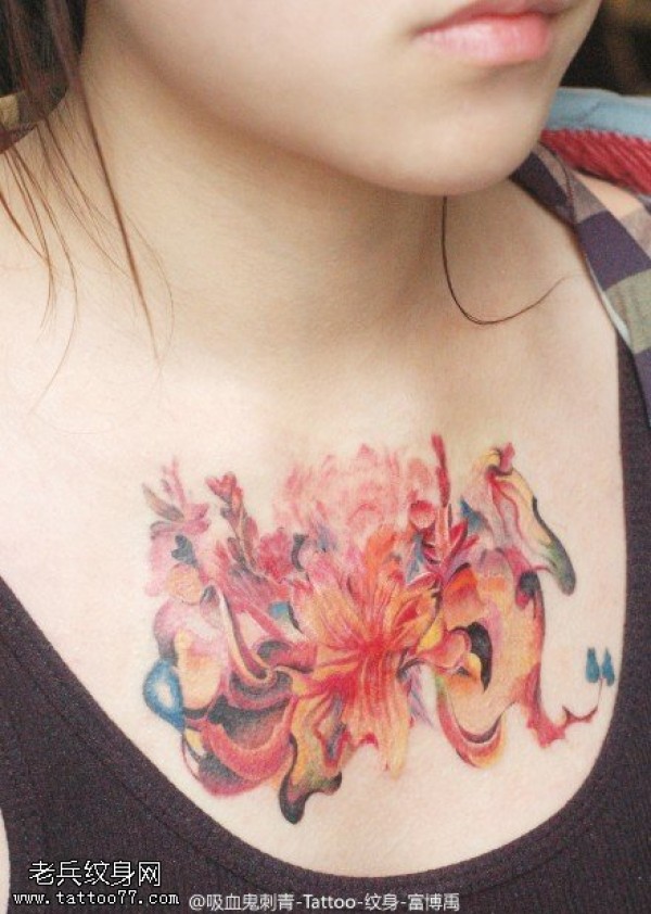 女性大花胸纹身_43张霸气漂亮的女性大花胸纹身图案作品