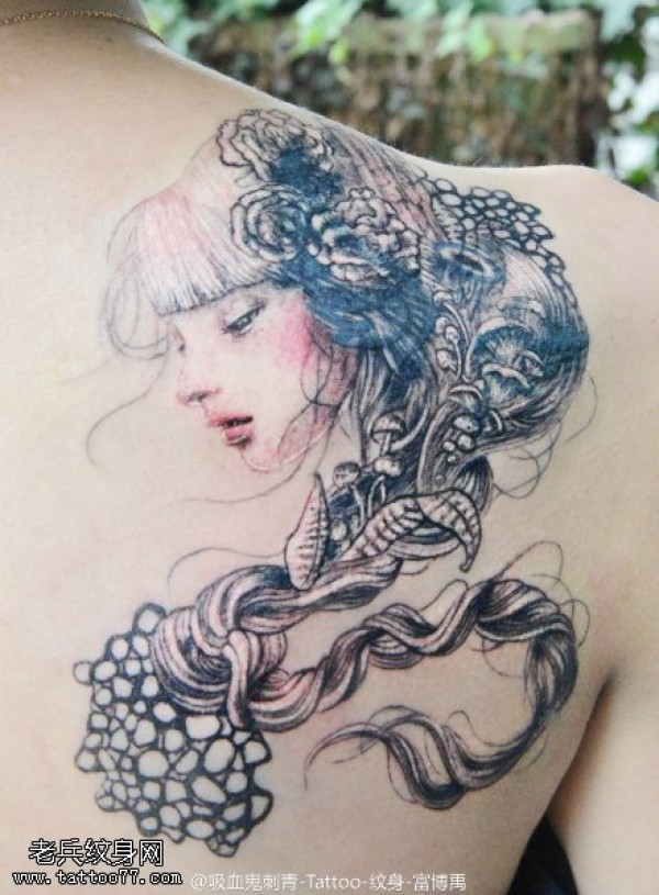 女生肩花纹身_15张女性双肩对称的肩花纹身图案作品图片