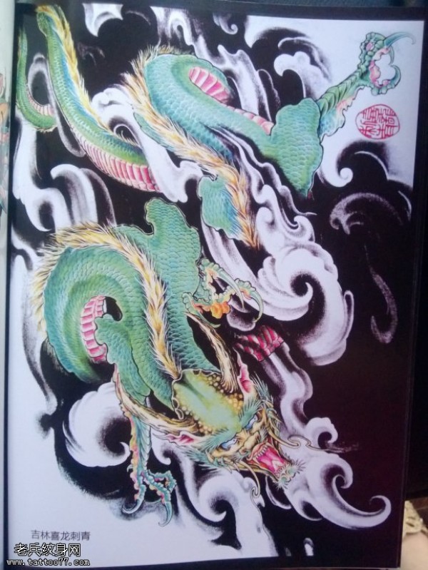 龙纹身手稿_一组老传统黑灰龙手稿纹身图案