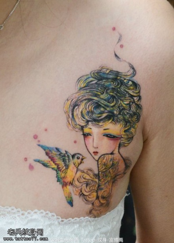 这是一个很让人遐想的纹身,我看到的时候邪恶_胸部纹身图案大全_纹身图吧