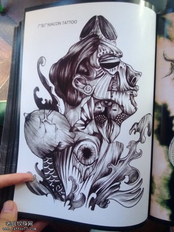 能面万媚纹身手稿_52张日式能剧面具纹身手稿图案素材欣赏