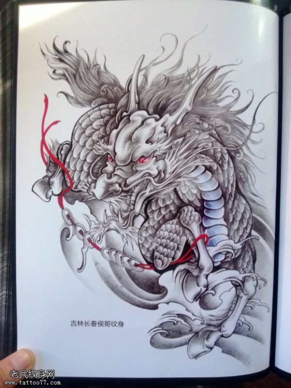 龙纹身手稿_一组老传统黑灰龙手稿纹身图案