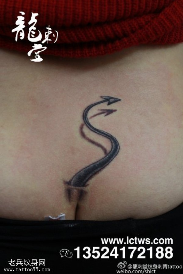 女生后腰纹身黑白灰风格抽象线条纹身图案