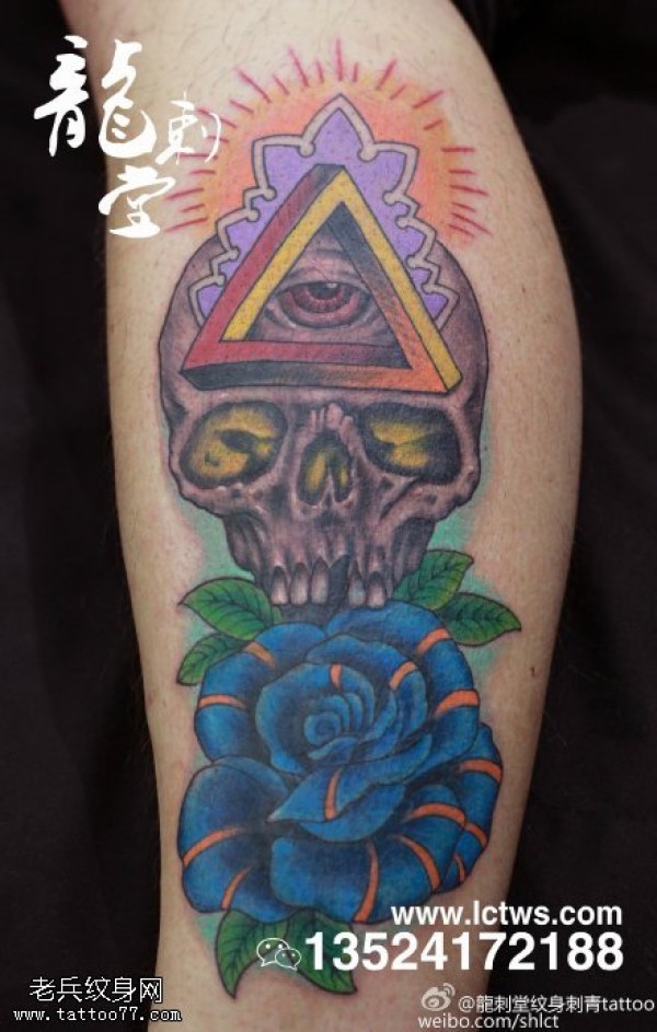 腿部上帝之眼骷髅纹身图案