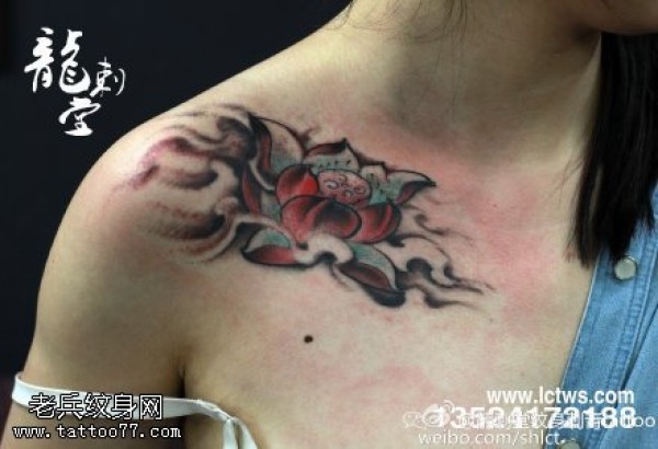 肩部美丽妖娆荷花纹身图案