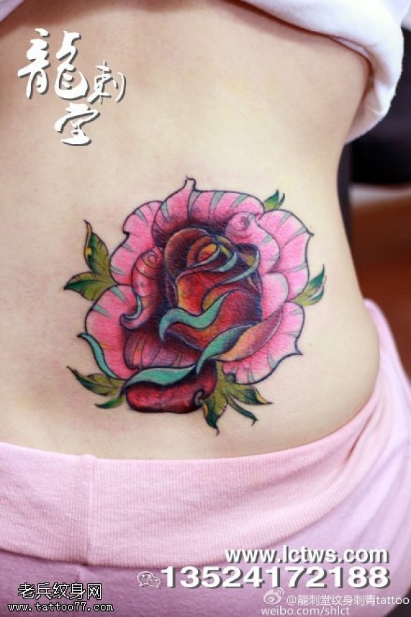 腰部美丽可爱大花艳丽纹身图案
