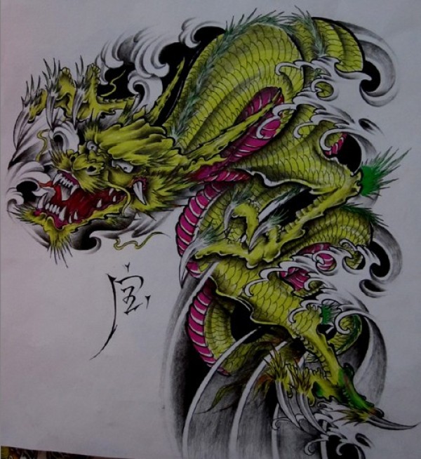 龙纹身手稿_一组老传统黑灰龙手稿纹身图案