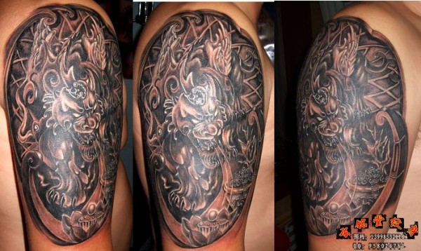 大连玄铭堂纹身上臂貔貅纹身