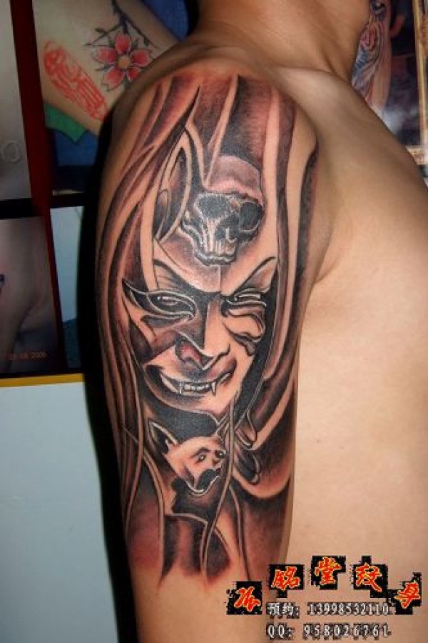 能面万媚纹身手稿_52张日式能剧面具纹身手稿图案素材欣赏
