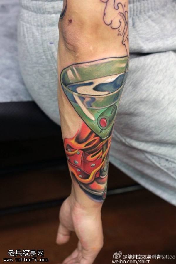 胳膊金属鸡尾酒纹身图案
