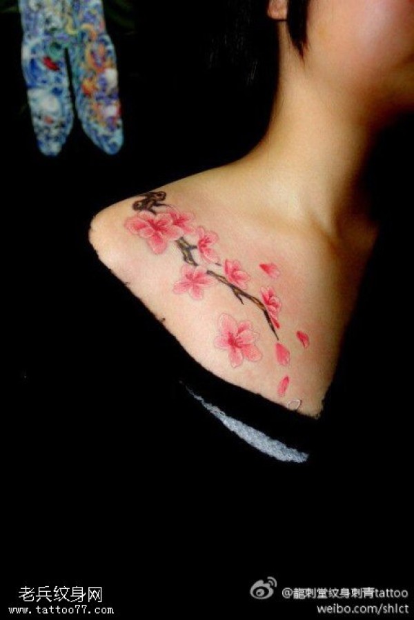 女生肩花纹身_15张女性双肩对称的肩花纹身图案作品图片