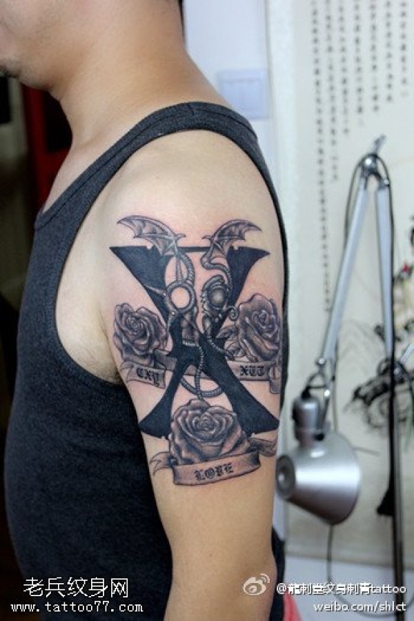 胳膊x字纹身图案