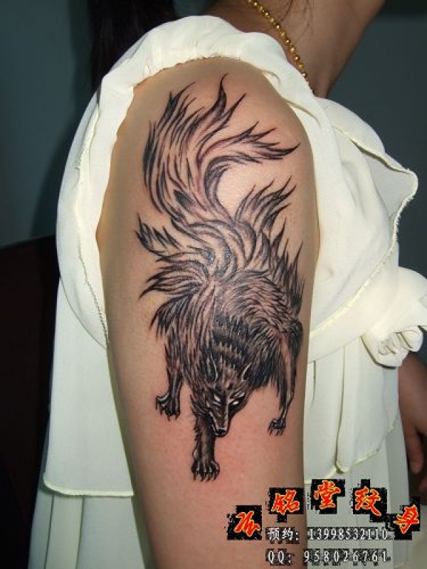 大连玄铭堂纹身 美女上臂九尾狐纹身