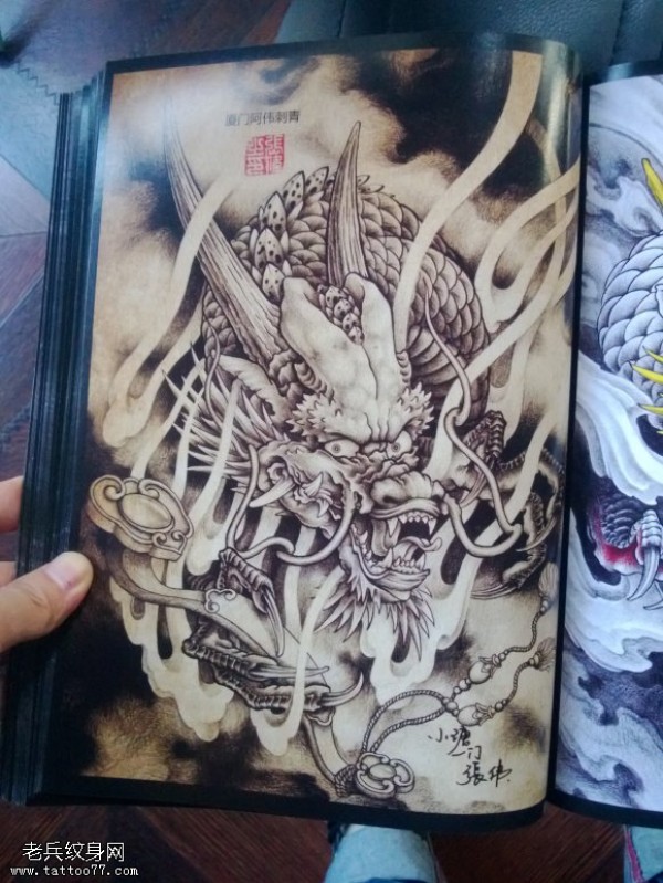 龙纹身手稿_一组老传统黑灰龙手稿纹身图案