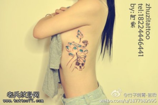 女性腰部莲花花纹刺青_腰部纹身图案大全_纹身图吧