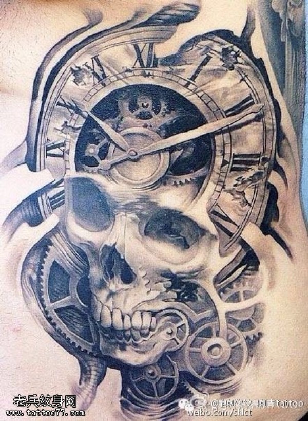 侧腰女骷髅刺青图案图片_骷髅纹身图案大全_纹身图吧