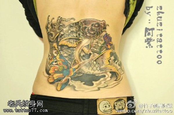 女性腰部莲花花纹刺青_腰部纹身图案大全_纹身图吧