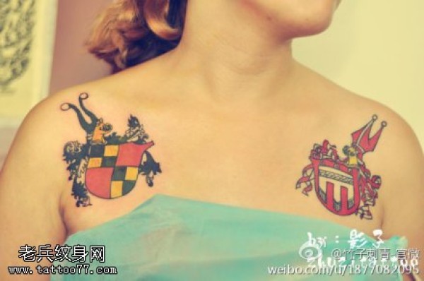 女生肩花纹身_15张女性双肩对称的肩花纹身图案作品图片