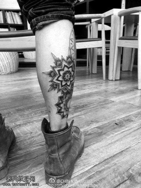 花腿纹身--一组大黑腿纹身图案作品欣赏