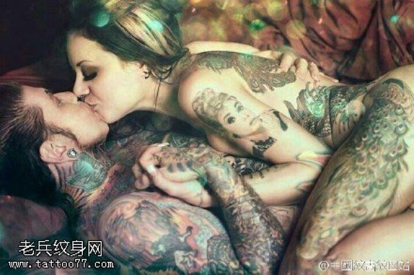 欧美情侣激吻纹身图案