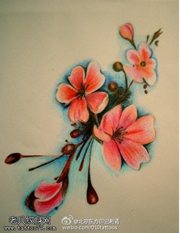 彩绘唯美小樱花手稿纹身图案