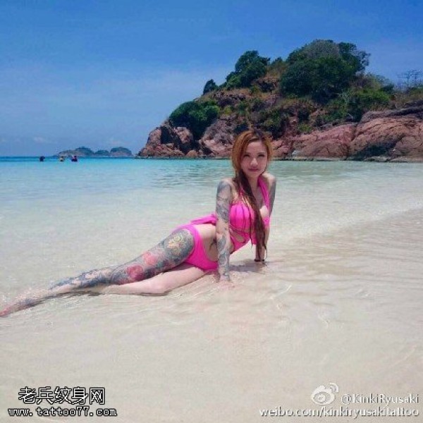 沙滩上的性感纹身美女纹身图案