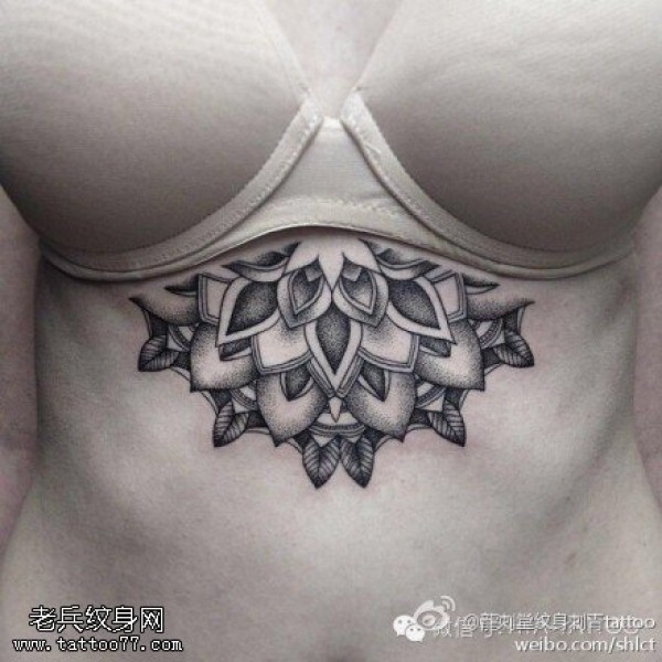 胸下梵花点刺纹身图案