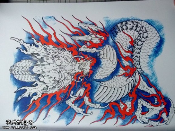 龙纹身手稿_一组老传统黑灰龙手稿纹身图案