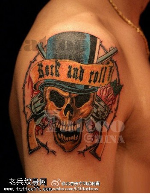 型男肩部骷髅头纹身图案