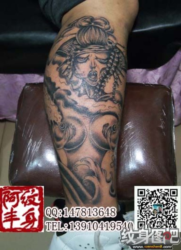 腿部纹身 腿部魔女纹身图案