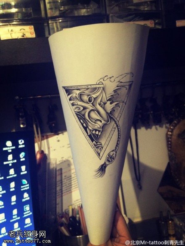 能面万媚纹身手稿_52张日式能剧面具纹身手稿图案素材欣赏