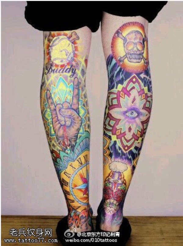 霸气威风的彩色腿纹身图案