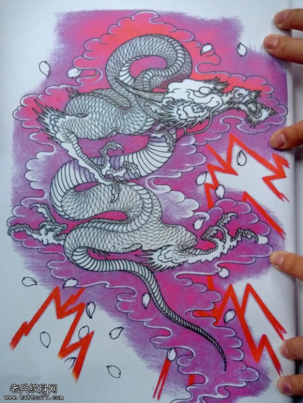 龙纹身手稿_一组老传统黑灰龙手稿纹身图案