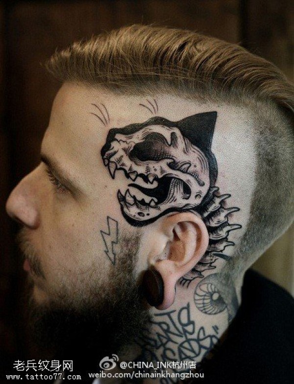 霸气男头部时尚纹身图片_头部纹身图案大全_纹身图吧