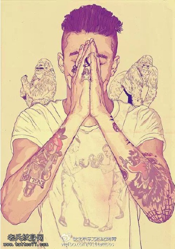画中信仰的男子手稿纹身图案