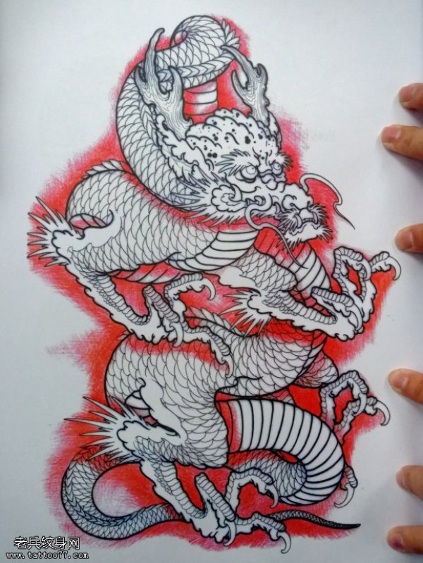 花臂龙纹身手稿纹身图案