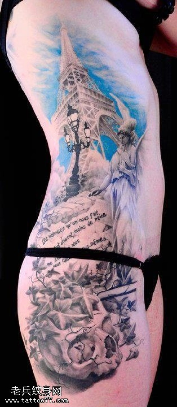 分享一款腰部时尚性感的蝶恋花纹身图案_腰部纹身图案大全_纹身图吧
