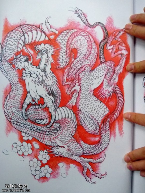 老兵纹身一款龙纹身线条