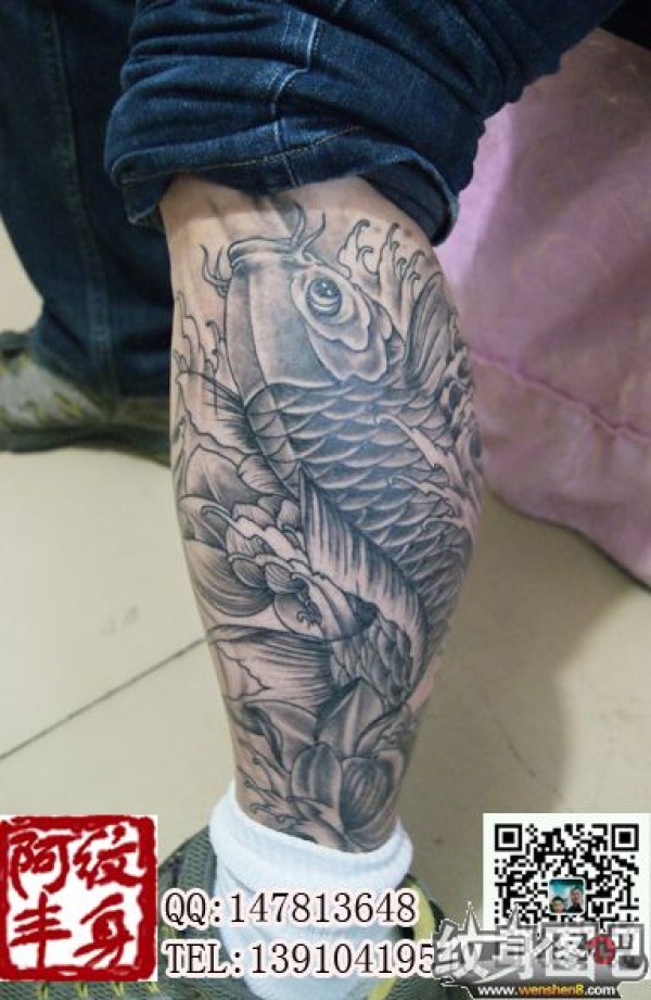 腿部纹身 腿部鱼纹身图案 海淀附近纹身 阿丰纹身