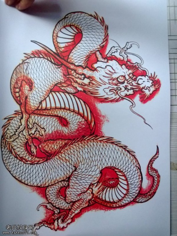 龙纹身手稿_一组老传统黑灰龙手稿纹身图案