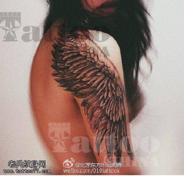 个性美女肩部翅膀纹身图案