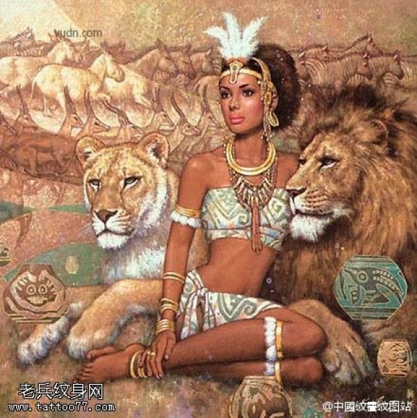 霸气的印度女郎左虎又狮纹身图案