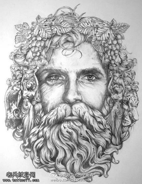 希腊海神头像手稿纹身图案