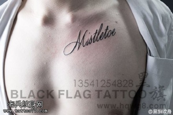 锁骨简单的花体英文纹身图案