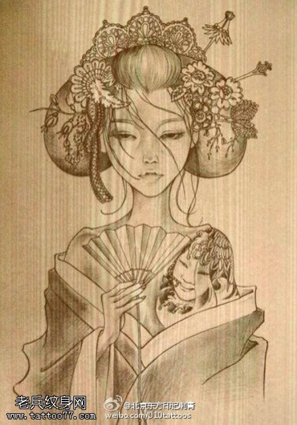 传统艺妓般若纹身图案手稿