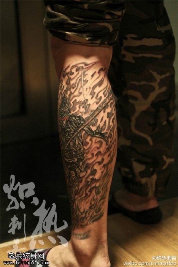 花腿纹身--一组大黑腿纹身图案作品欣赏